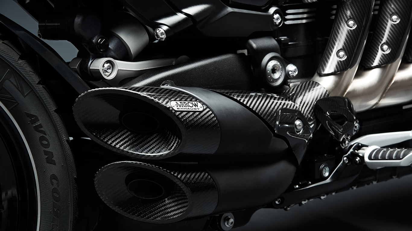 • นอกจากสมรรถนะระดับไร้เทียมทานแล้ว Rocket III TFC ยังได้รับการติดตั้งท่อเก็บเสียง Arrow พร้อมปลายท่อคาร์บอนไฟเบอร์ที่ออกแบบมาเพื่อรุ่นนี้โดยเฉพาะ เพื่อเสียงเครื่องยนต์ที่จะคำรามทุ้มลึกอย่างดุดัน