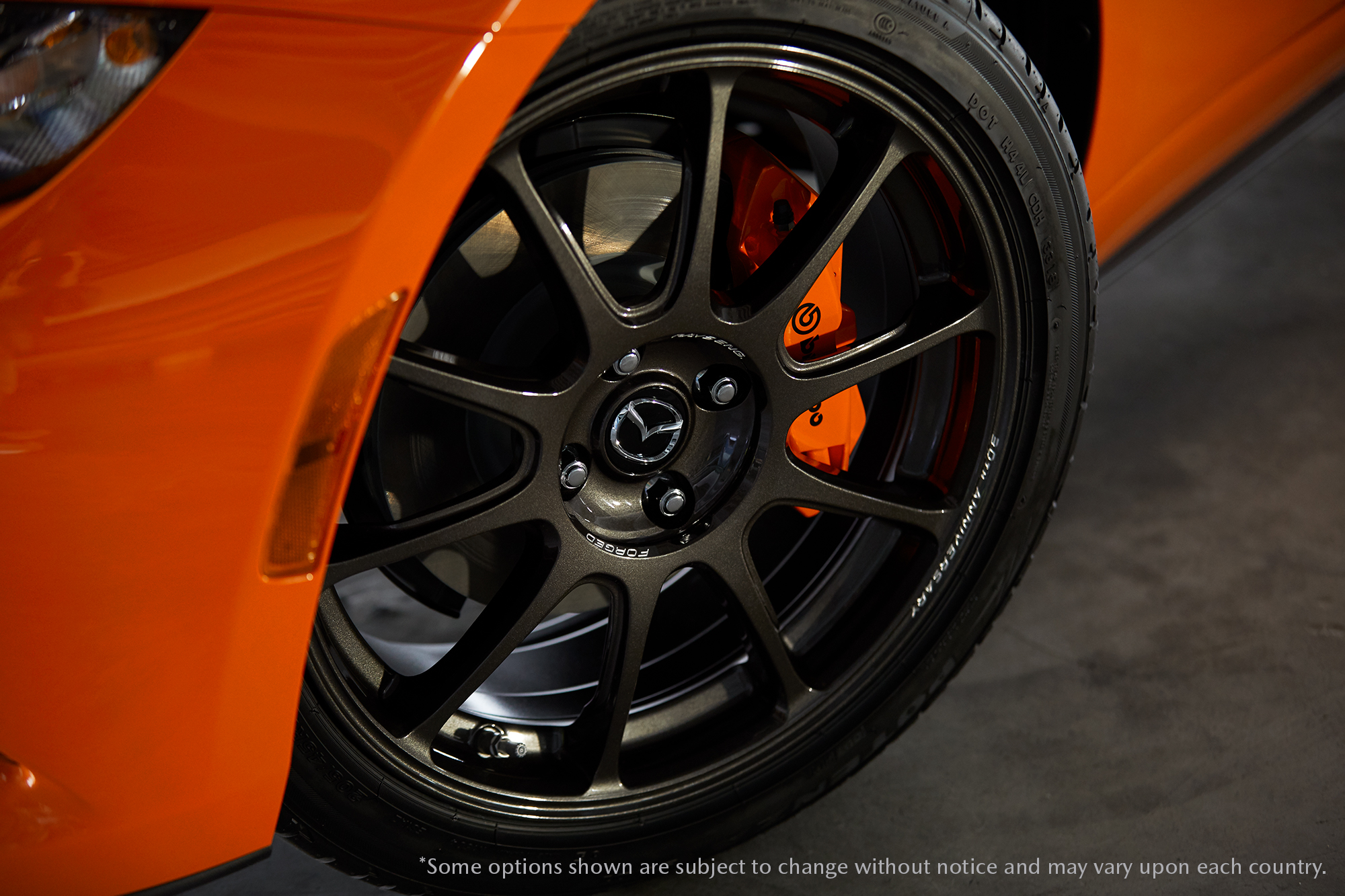 • สะดุดสายตาด้วยสีส้มใหม่ Racing Orange ที่ปรุงแต่งต่อยอดจากสีเหลืองของ Mazda MX-5 เจนเนอเรชั่นแรก เสมือนแสงรุ่งอรุณของวันใหม่