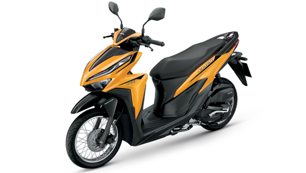 New Honda Click 150i ดีไซน์ที่โฉบเฉี่ยว ปรับสีสันใหม่ โดยนำสีส้มมาตัดกับสีดำและสีขาว ให้ความรู้สึกของความเป็นไฮเปอร์สปอร์ต หรูหราด้วยไฟ LED ทั้งด้านหน้าและด้านหลัง ไฟเลี้ยวและบังโคลนแบบแยก ท่อไอเสียและล้อแม็กสไตล์สปอร์ต มั่นใจด้วยดิสก์เบรกหน้า พร้อมระบบคอมบายเบรก