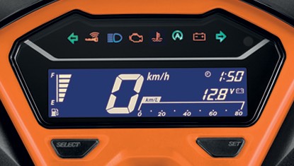 ล้ำสมัยด้วยแผงหน้าปัดแบบดิจิทัล แสดงอัตราการใช้น้ำมัน นาฬิกา ไฟเตือนการเปลี่ยนถ่ายน้ำมันเครื่อง ไฟบอกระดับแบตเตอรี่ บอกระยะทางและจับระยะทางทริป ข้อมูลฟังก์ชั่นอื่นๆ