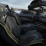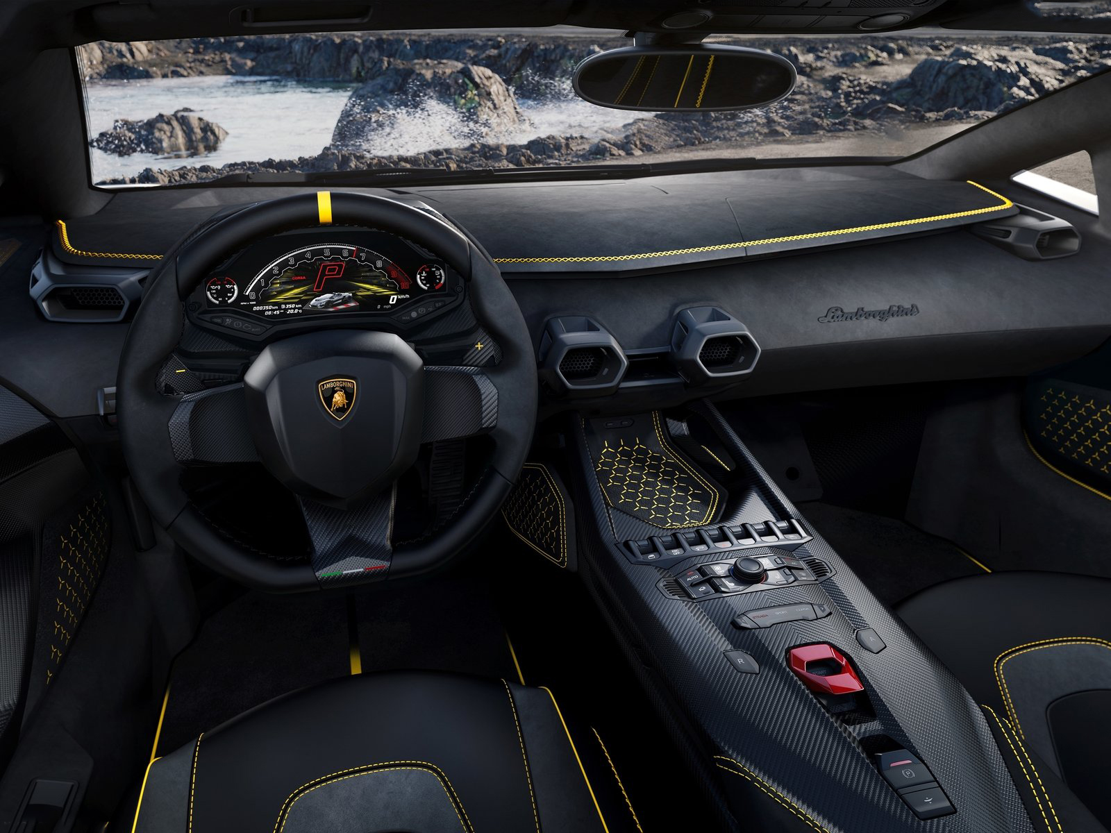 ภายในใช้สีเดียวกับตัวรถ ตัดกับหนัง Rosso Alala และ Nero Cosmus Alcantara โดดเด่นด้วยลายปักเฉพาะบุคคลใน Rosso Alala และ Nero Ade แผงแดชบอร์ดมีโลโก้ Lamborghini ใน Rosso Efesto ซึ่งเป็นสีเดียวกับแป้นเปลี่ยนเกียร์บนพวงมาลัย