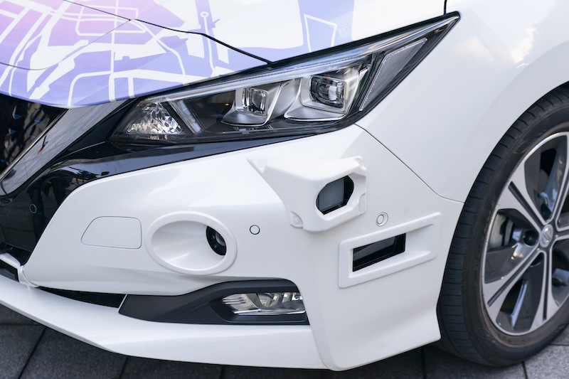 รถยนต์ต้นแบบ นิสสัน ลีฟ ประกอบด้วยกล้อง 14 ตัว Radar 10 ตัว และเทคโนโลยี LIDAR 6 ตัว นำเสนอถึงความก้าวหน้าของนิสสันในด้านการพัฒนาระบบขับขี่อัตโนมัติ โดยเฉพาะอย่างยิ่ง ในสภาพแวดล้อมของเมืองที่มีความซับซ้อน และเมื่อเปรียบเทียบกับรถต้นแบบรุ่นก่อนๆ ที่บริษัทได้สาธิตไปก่อนหน้านี้ รถยนต์ทดสอบรุ่นล่าสุดมีเซ็นเซอร์ที่ถูกติดตั้งบนหลังคาหลายชุด ซึ่งขยายพื้นที่ในการช่วยตรวจจับได้อย่างมากขึ้น และทำให้สามารถตรวจจับสภาพแวดล้อมได้แม่นยำมากยิ่งขึ้น