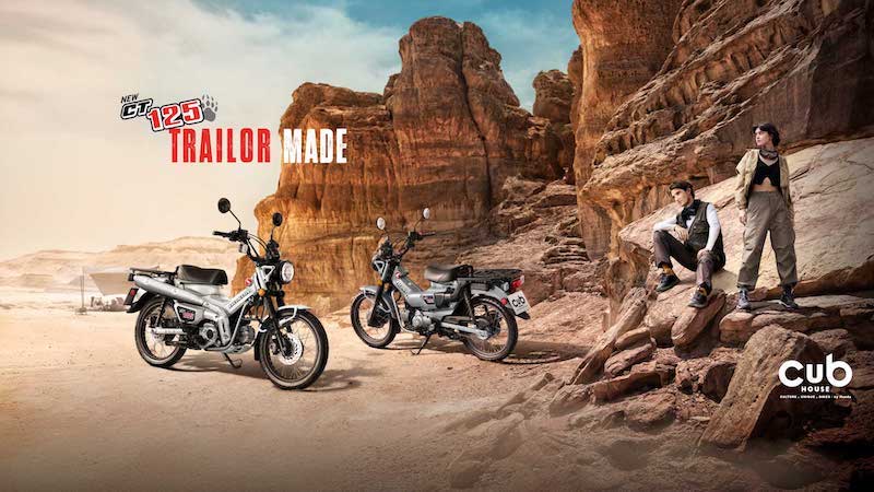 ตามด้วย ‘New Honda CT125’ ที่มาพร้อม 2 สีใหม่สุดพิเศษที่สะท้อนตัวตนแห่งการผจญภัยของผู้ขับขี่อย่างสมบูรณ์แบบ ด้วยการดึงเฉดสีธรรมชาติมาถ่ายทอดภายใต้คอนเซ็ปต์ ‘TRAILOR MADE’ ได้แก่ ‘สีเทา PEARL SMOKY GRAY’ ที่แสดงสีสันของเส้นทางสุดหิน