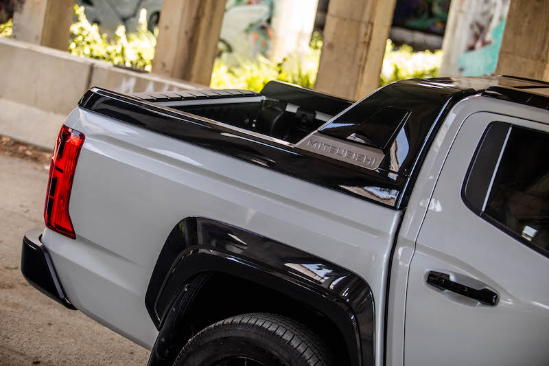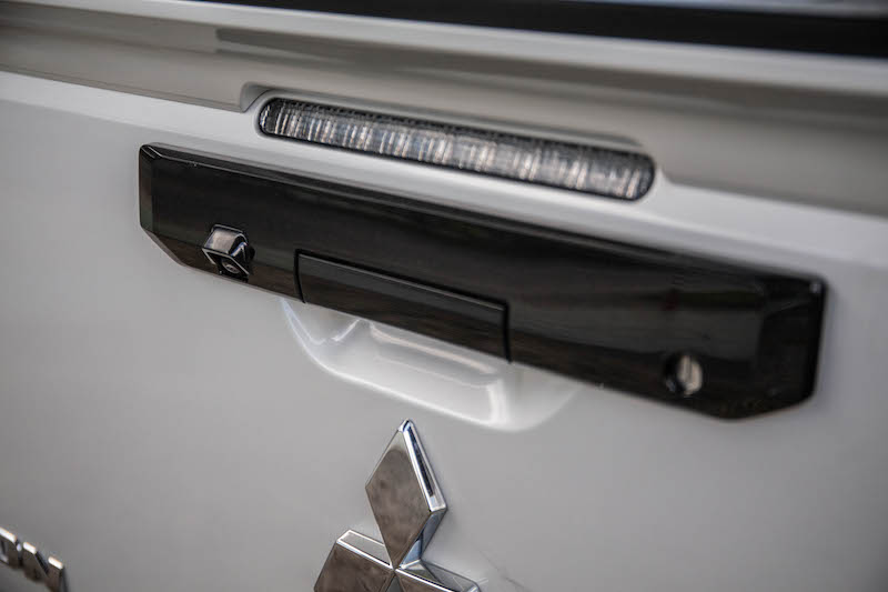 มือเปิดกระบะท้าย สีดำเงา,ตัวล็อกกระบะท้าย กันชนหลัง สีดำตกแต่งด้วยสีไทเทเนียมรมดำ , อุปกรณ์ตกแต่งซุ้มล้อ สีดำเงา