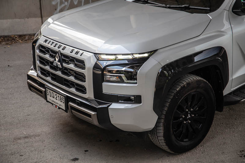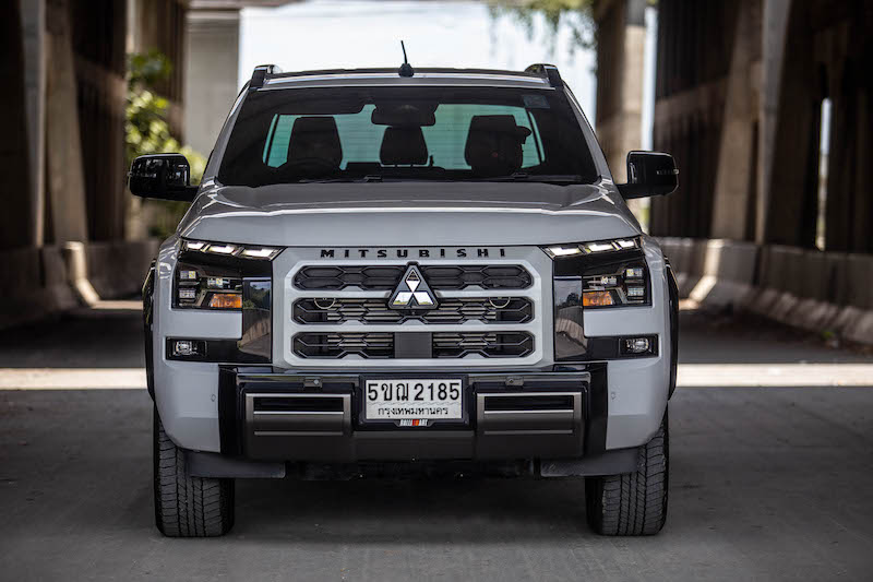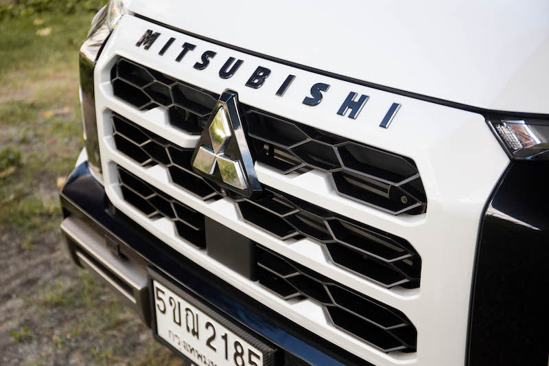 กระจังหน้าสีเดียวกับตัวรถพร้อมสัญลักษณ์ “MITSUBISHI” (Material Black with “MITSUBISHI” Mark) แผ่นกันกระแทกด้านล่าง (Skid Plate) ราวหลังคา (Roof Rail) อุปกรณ์ตกแต่งกันชนหน้า สีดำตกแต่งด้วยสีไทเทเนียมรมดำ (Black Painted with Smoke Titanium Accent Front Bumper Garnishi)