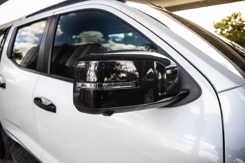 สปอร์ตบาร์สีดำ มือเปิดประตูด้านนอก สีดำเงา (Material Black Door Handle) บันไดข้างตกแต่งสีไทเทเนียมรมดำ (Smoke Titanium Accent Side Step) กระจกมองข้างปรับ และพับเก็บด้วยระบบไฟฟ้า สีดำเงา
