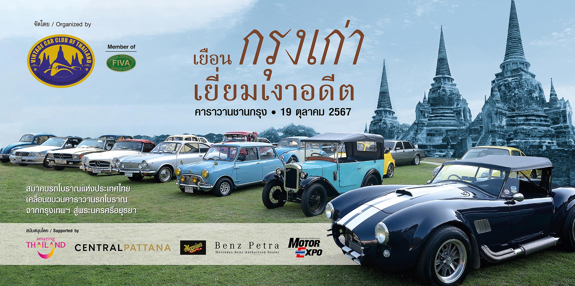สมาคมรถโบราณแห่งประเทศไทย ร่วมกับ เซ็นทรัลพัฒนา และการท่องเที่ยวแห่งประเทศไทย จัดขบวนรถโบราณ และรถคลาสสิคกว่า 30 คัน ขับเที่ยวชานกรุง เส้นทางกรุงเทพฯ – พระนครศรีอยุธยา เมื่อวันที่ 19 ตุลาคม ที่ผ่านมา