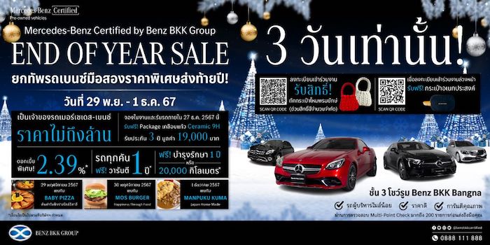 เบนซ์ บีเคเค กรุ๊ป – บางนา จัดเต็ม! มหกรรมความสุขส่งท้ายปี พร้อมสร้างความตื่นเต้นให้กับตลาดอย่างต่อเนื่องเนรมิตโชว์รูมให้เป็นพื้นที่แห่งความสุข อัดแคมเปญทั้งโชว์รูม และศูนย์บริการ
