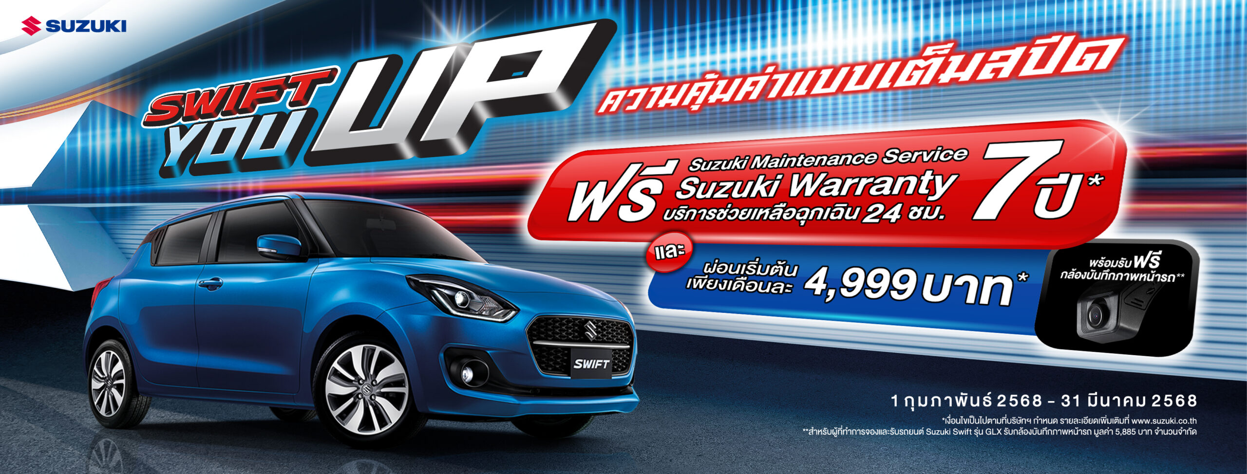 เฉพาะรุ่น SWIFT GLX ฟรี กล้องบันทึกภาพหน้ารถมูลค่า 5,885 บาท