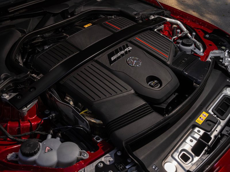 เครื่องกำเนิดไฟฟ้าสตาร์ทแบบบูรณาการจะให้กำลังบูสต์เพิ่มเติม 17 กิโลวัตต์ (23 แรงม้า) และแรงบิด 205 นิวตันเมตรในระยะสั้น นอกจากนี้ยังจ่ายไฟให้กับระบบไฟฟ้า 48 โวลต์ คุณสมบัติทางเทคนิคอื่นๆ ของรุ่นใหม่นี้ ได้แก่ เกียร์ AMG SPEEDSHIFT TCT 9G ระบบขับเคลื่อนสี่ล้อแบบแปรผันเต็มรูปแบบ AMG Performance 4MATIC+ และระบบบังคับเลี้ยวเพลาหลังแบบแอคทีฟ