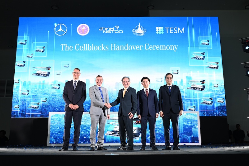 –เบนซ์ ในระดับโลก ที่ขับเคลื่อนแผนงานด้านความยั่งยืนอย่างจริงจังในทุกมิติ หนึ่งในนั้นคือการผลักดันระบบเศรษฐกิจหมุนเวียน (Circular Economy) ภายใต้แนวคิด “Design for Circularity” ที่เริ่มตั้งแต่ขั้นตอนการผลิตในการเพิ่มสัดส่วนของการใช้วัสดุทดแทนที่มาจากกระบวนการรีไซเคิลชิ้นส่วนรถยนต์ ในขณะเดียวกัน เมอร์เซเดส–เบนซ์ ประเทศไทย ก็ได้เล็งเห็นประโยชน์ในการนำแบตเตอรี่แรงดันสูงที่ใช้สำหรับการทดสอบแบตเตอรี่ในกระบวนการผลิต มาพัฒนาเป็นแหล่งพลังงานที่ใช้เชื่อมต่อกับสายส่งไฟฟ้า โดยริเริ่มด้วยการลงนามบันทึกความร่วมมือ (MoU) กับสำนักงานพัฒนาวิทยาศาสตร์และเทคโนโลยีแห่งชาติ (สวทช.) พร้อมส่งมอบเซลล์แบตเตอรี่ลิเทียมไอออน (Cellblocks) ขนาด 2 เมกะวัตต์ ให้กับ สวทช. ภายในเดือนกรกฎาคม 2567 เพื่อสนับสนุนการวิจัย พัฒนา และร่วมมือถ่ายทอดเทคโนโลยีสู่สังคมไทย ทั้งยังยกระดับความสามารถของบุคลากรไทย และสนับสนุนการทดสอบแบตเตอรี่ยานยนต์ไฟฟ้าที่ผลิตในประเทศให้มีมาตรฐานระดับโลก